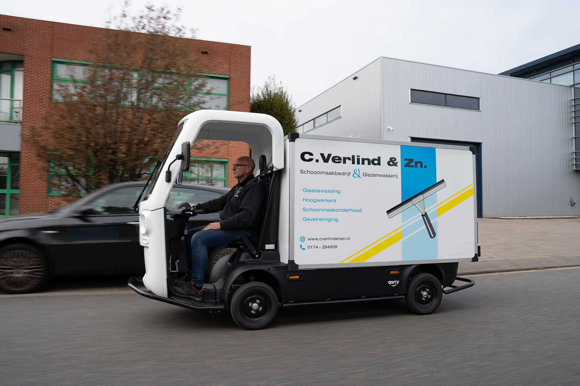 In het drukke Den Haag houdt schoonmaakbedrijf C. Verlind & Zoon de portieken, kantoren en trappenhuizen schoon. Toen milieuregels en verkeersdrukte toenamen, werd efficiënt werken steeds lastiger. Met de komst van de emissievrije zones dreigde bereikbaarheid een probleem te worden. De overstap naar de elektrische Qarry bracht de oplossing: flexibel, snel en zonder parkeerstress.